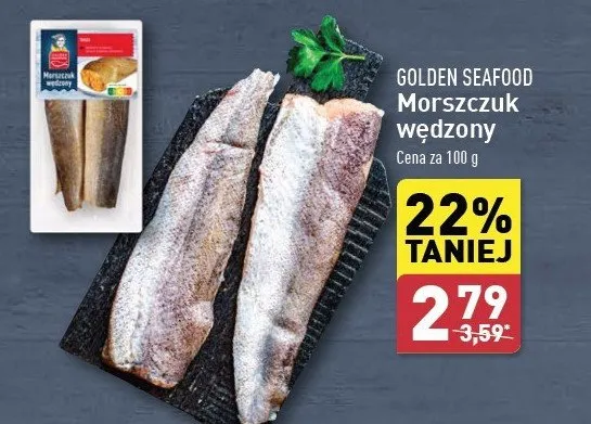 Cena produktu r贸偶ni si臋 w zale偶no艣ci od wybranego sklepu. Produkt Morszczuk w臋dzony Golden seafood mo偶esz kupi膰 w promocji ju偶 od 4,39 z艂. Najta艅sza oferta, jak膮 mamy w naszej bazie jest z sieci Aldi. Morszczuk w臋dzony Golden seafood kosztuje aktualnie 4,39 z艂. Zobacz ofert臋