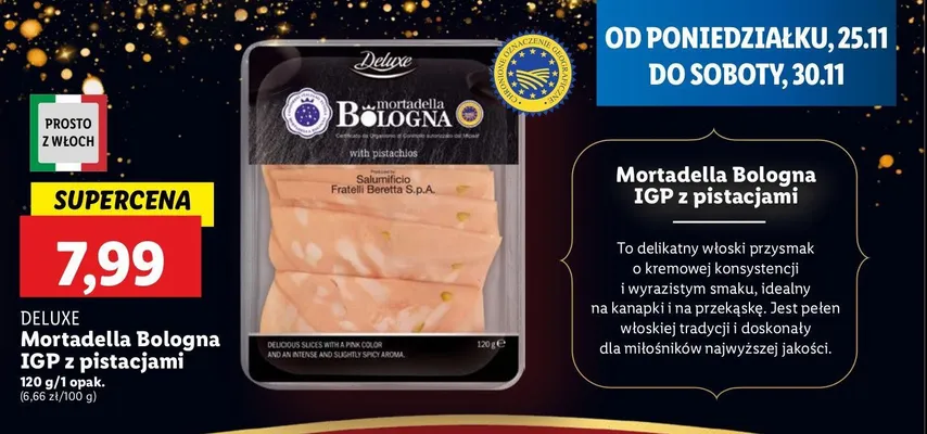 Ile kosztuje Mortadella bologna z pistacjami DE LUXE?