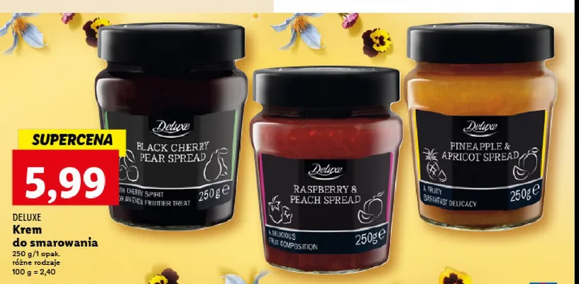 Zastanawiasz si臋, gdzie kupi膰 i ile kosztuje produkt Mus ananasowo morelowy Deluxe? Regularnie sprawdzamy, czy jest promocja na ten produkt w Biedronka, Lidl, Kaufland, Auchan, Netto, Makro i innych sklepach. Aktualnie nie posiadamy ofert promocyjnych na ten produkt.
