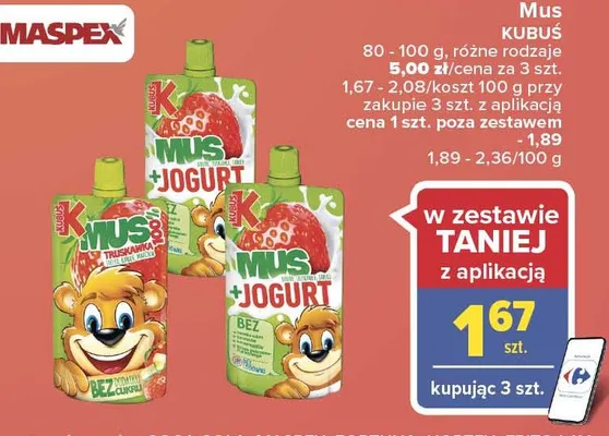 Ile kosztuje Mus banan-truskawka-jab艂ko Kubu艣 mus + jogurt?