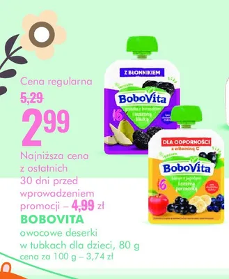 Cena produktu r贸偶ni si臋 w zale偶no艣ci od wybranego sklepu. Niestety nie posiadamy danych o aktualnych promocjach, jednak w艣r贸d archiwalnych ofert Mus gruszka z suszon膮 艣liwk膮 Bobovita mniam bio kosztuje od 2,79 z艂 do 4,19 z艂.