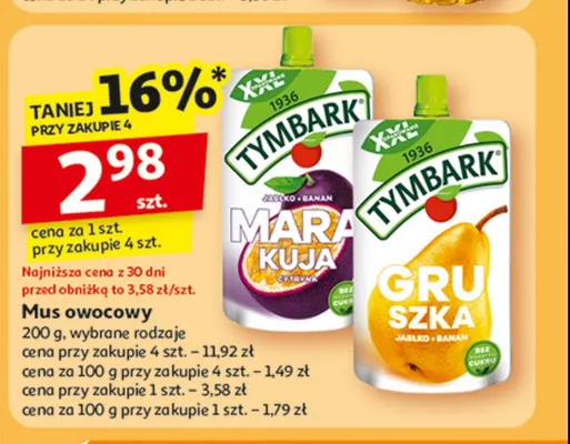 Przegl膮daj oferty promocyjne na produkt Mus jab艂ko-banan-marakuja-cytryna Tymbark mus