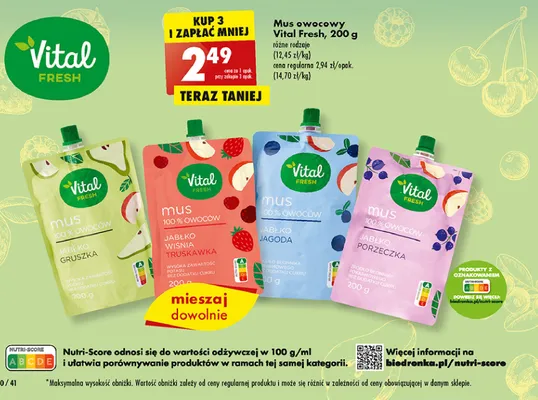 Ile kosztuje Mus jab艂ko-truskawka-pigwowiec Vital fresh?