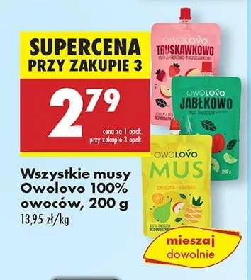 Cena produktu r贸偶ni si臋 w zale偶no艣ci od wybranego sklepu. Niestety nie posiadamy danych o aktualnych promocjach, jednak w艣r贸d archiwalnych ofert Mus jab艂kowo Owolovo kosztuje od 2,79 z艂 do 2,99 z艂.