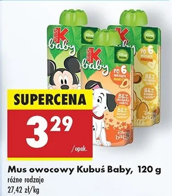 Cena produktu r贸偶ni si臋 w zale偶no艣ci od wybranego sklepu. Produkt Mus mango disney Kubu艣 baby mo偶esz kupi膰 w promocji ju偶 od 5,19 z艂. Najta艅sza oferta, jak膮 mamy w naszej bazie jest z sieci Selgros. Mus mango disney Kubu艣 baby kosztuje aktualnie 5,19 z艂. Zobacz ofert臋