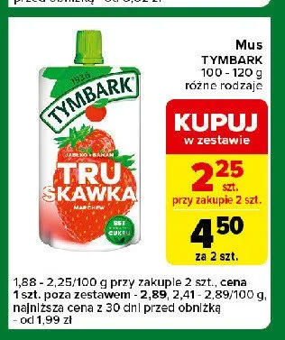 Ile kosztuje Mus truskawka-jab艂ko-banan-marchew Tymbark mus 100% owoc贸w?