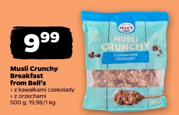 Ile kosztuje Musli crunchy z kawa艂kami czekolady Breakfast from bell's?