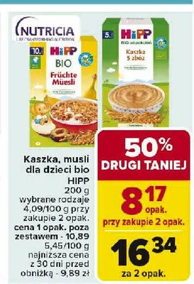 Cena produktu różni się w zależności od wybranego sklepu. Niestety nie posiadamy danych o aktualnych promocjach, jednak wśród archiwalnych ofert Musli wielozbożowe banan jabłko śliwka Hipp kosztuje od 7,5 zł do 9,99 zł.
