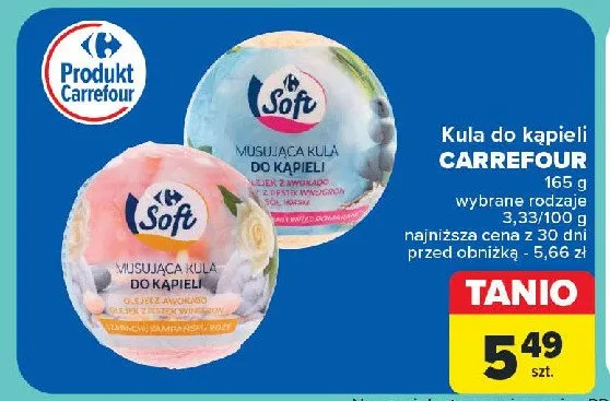 Gdzie można tanio kupić produkt Musująca kula do kąpieli o zapachu szampańskiej rózy Carrefour soft?