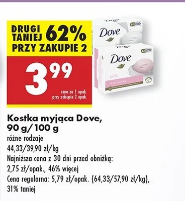 Cena produktu r贸偶ni si臋 w zale偶no艣ci od wybranego sklepu. Niestety nie posiadamy danych o aktualnych promocjach, jednak w艣r贸d archiwalnych ofert Myd艂o Dove kosztuje od 3,99 z艂.