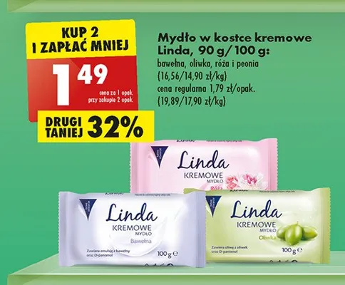Cena produktu r贸偶ni si臋 w zale偶no艣ci od wybranego sklepu. Niestety nie posiadamy danych o aktualnych promocjach, jednak w艣r贸d archiwalnych ofert Myd艂o oliwka Linda kosztuje od 0,89 z艂 do 1,49 z艂.