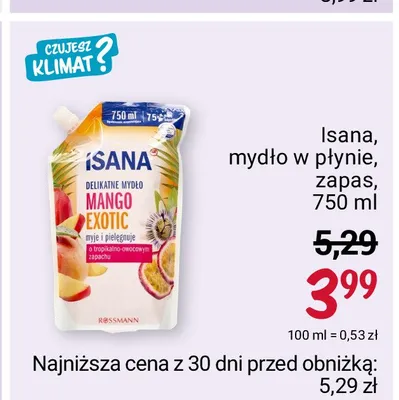 Przegl膮daj podobne oferty promocyjne do Myd艂o w p艂ynie mango exotic - zapas Isana!