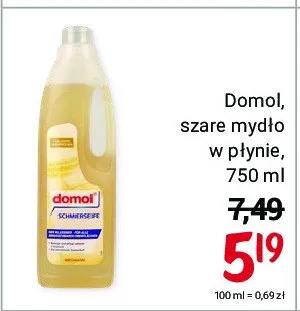Cena produktu r贸偶ni si臋 w zale偶no艣ci od wybranego sklepu. Niestety nie posiadamy danych o aktualnych promocjach, jednak w艣r贸d archiwalnych ofert Myd艂o w p艂ynie szare Domol kosztuje od 5,19 z艂.