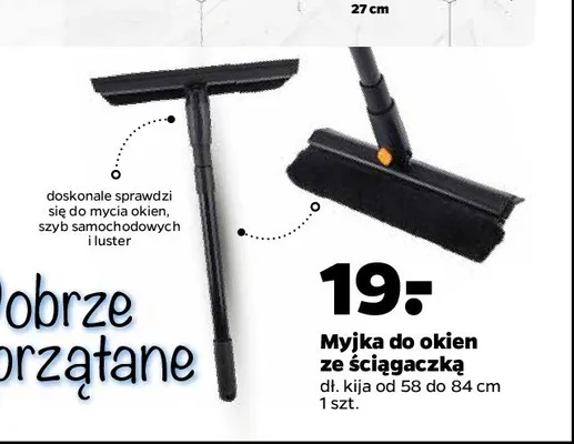 Cena produktu r贸偶ni si臋 w zale偶no艣ci od wybranego sklepu. Niestety nie posiadamy danych o aktualnych promocjach, jednak w艣r贸d archiwalnych ofert Myjka do okien ze 艣ci膮gaczk膮 58-84 cm kosztuje od 19 z艂.