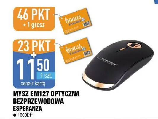 Cena produktu r贸偶ni si臋 w zale偶no艣ci od wybranego sklepu. Niestety nie posiadamy danych o aktualnych promocjach, jednak w艣r贸d archiwalnych ofert Mysz bezprzewodowa optyczna em127 Esperanza kosztuje od 11,5 z艂.