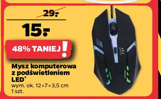 Cena produktu r贸偶ni si臋 w zale偶no艣ci od wybranego sklepu. Niestety nie posiadamy danych o aktualnych promocjach, jednak w艣r贸d archiwalnych ofert Myszka komputerowa z pod艣wietleniem led kosztuje od 15 z艂 do 29 z艂.