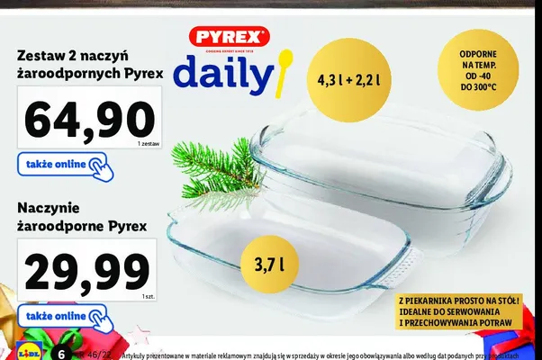 Cena produktu r贸偶ni si臋 w zale偶no艣ci od wybranego sklepu. Produkt Naczynie 偶aroodporne 3.7 l Pyrex mo偶esz kupi膰 w promocji ju偶 od 24,99 z艂. Najta艅sza oferta, jak膮 mamy w naszej bazie jest z sieci Dino. Naczynie 偶aroodporne 3.7 l Pyrex kosztuje aktualnie 24,99 z艂. Zobacz ofert臋