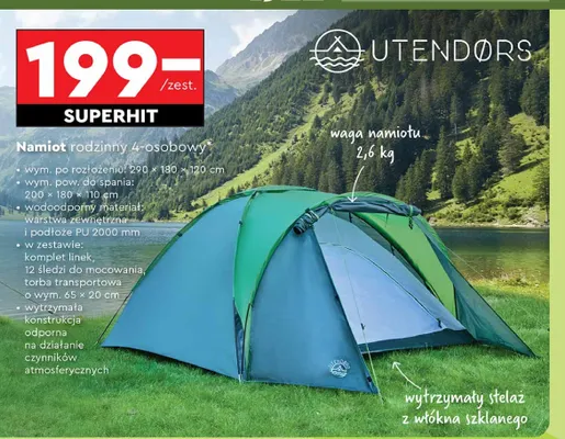 Gdzie mo偶na tanio kupi膰 produkt Namiot 4 osobowy 290 x 180 x 120 cm Utendors?