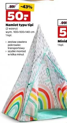 Zastanawiasz si臋, gdzie kupi膰 i ile kosztuje produkt Namiot dla dzieci tipi 100 x 100 x 140 cm? Regularnie sprawdzamy, czy jest promocja na ten produkt w Biedronka, Lidl, Kaufland, Auchan, Netto, Makro i innych sklepach. Aktualnie nie posiadamy ofert promocyjnych na ten produkt.