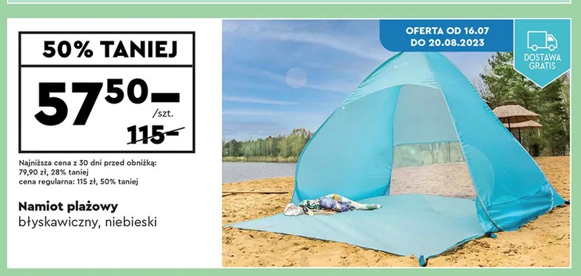 Gdzie można tanio kupić produkt Namiot plażowy błyskawiczny niebieski?