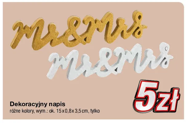 Przegl膮daj podobne oferty promocyjne do Napis dekoracyjny mr & mrs!
