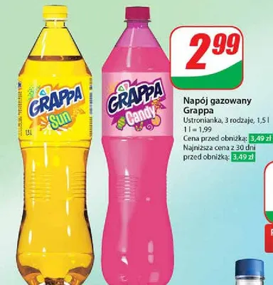 Cena produktu r贸偶ni si臋 w zale偶no艣ci od wybranego sklepu. Produkt Nap贸j candy Grappa mo偶esz kupi膰 w promocji ju偶 od 3,49 z艂. Najta艅sza oferta, jak膮 mamy w naszej bazie jest z sieci Makro. Nap贸j candy Grappa kosztuje aktualnie 3,49 z艂. Zobacz ofert臋