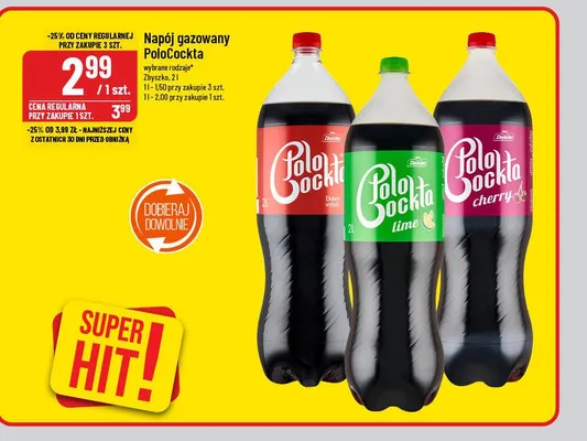 Cena produktu r贸偶ni si臋 w zale偶no艣ci od wybranego sklepu. Niestety nie posiadamy danych o aktualnych promocjach, jednak w艣r贸d archiwalnych ofert Nap贸j cherry Polo cockta kosztuje od 2,99 z艂 do 3,99 z艂.