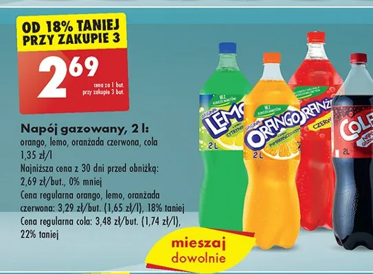 Cena produktu r贸偶ni si臋 w zale偶no艣ci od wybranego sklepu. Niestety nie posiadamy danych o aktualnych promocjach, jednak w艣r贸d archiwalnych ofert Nap贸j Cola kosztuje od 2,69 z艂 do 2,79 z艂.