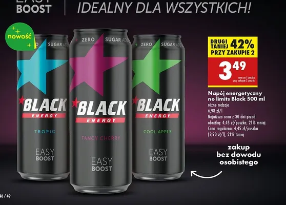 Przegl膮daj podobne oferty promocyjne do Nap贸j energetyczny no limits cool apple Black energy!