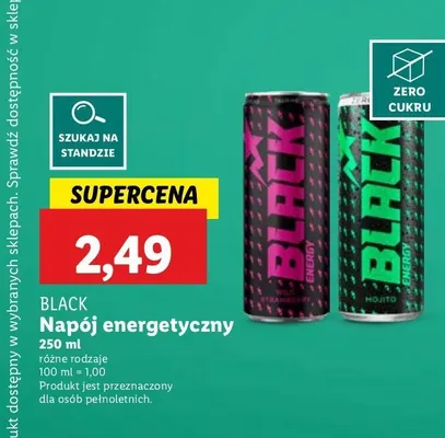 Przegl膮daj oferty promocyjne na produkt Nap贸j energetyczny wild strawberry zero sugar Black energy
