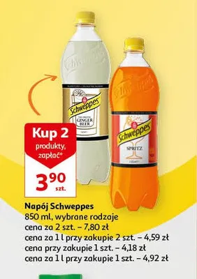 Cena produktu r贸偶ni si臋 w zale偶no艣ci od wybranego sklepu. Niestety nie posiadamy danych o aktualnych promocjach, jednak w艣r贸d archiwalnych ofert Nap贸j ginger beer Schweppes kosztuje od 3,9 z艂 do 4,49 z艂.