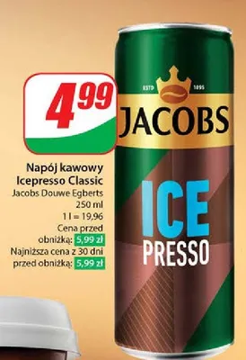 Cena produktu r贸偶ni si臋 w zale偶no艣ci od wybranego sklepu. Niestety nie posiadamy danych o aktualnych promocjach, jednak w艣r贸d archiwalnych ofert Nap贸j kawowy classic JACOBS ICE PRESSO kosztuje od 4,79 z艂 do 5,39 z艂.