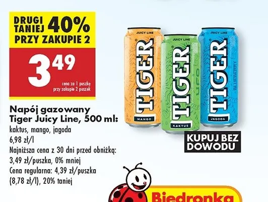 Ile kosztuje Nap贸j mango Tiger energy drink juicy line?