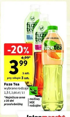 Cena produktu r贸偶ni si臋 w zale偶no艣ci od wybranego sklepu. Niestety nie posiadamy danych o aktualnych promocjach, jednak w艣r贸d archiwalnych ofert Nap贸j raspberry no sugar Fuzetea kosztuje od 3,99 z艂.