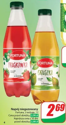 Cena produktu r贸偶ni si臋 w zale偶no艣ci od wybranego sklepu. Niestety nie posiadamy danych o aktualnych promocjach, jednak w艣r贸d archiwalnych ofert Nap贸j truskawka Fortuna kosztuje od 2,69 z艂 do 2,99 z艂.