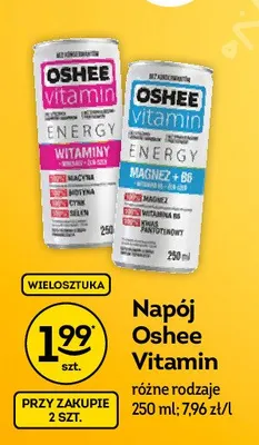 Cena produktu różni się w zależności od wybranego sklepu. Niestety nie posiadamy danych o aktualnych promocjach, jednak wśród archiwalnych ofert Napój witaminy + minerały + żeń szeń Oshee kosztuje od 1,49 zł do 2,5 zł.