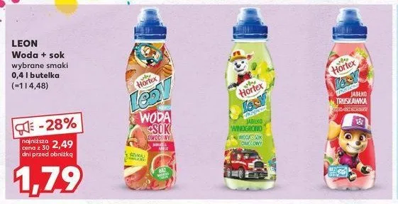 Przegl膮daj podobne oferty promocyjne do Nap贸j woda + sok owocowy jab艂ko & winogrono Hortex leon!