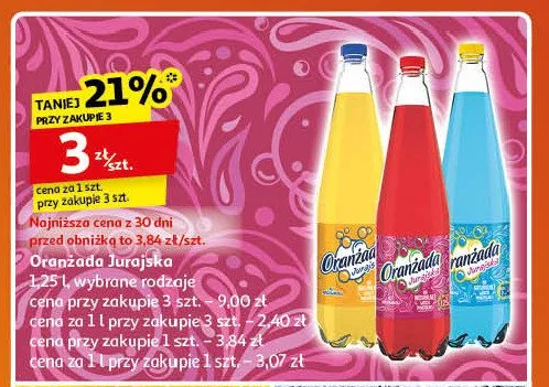 Cena produktu różni się w zależności od wybranego sklepu. Niestety nie posiadamy danych o aktualnych promocjach, jednak wśród archiwalnych ofert Napój żółty Jurajska oranżada kosztuje od 2,49 zł do 3,49 zł.