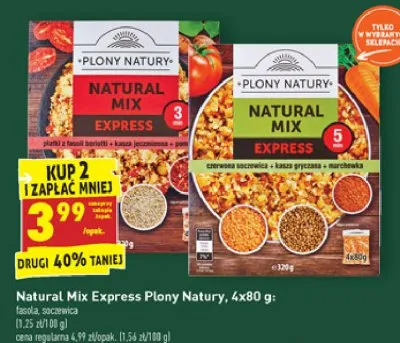 Ile kosztuje Natural mix express czerwona soczewica + kasza gryczana + marchewka Plony natury?