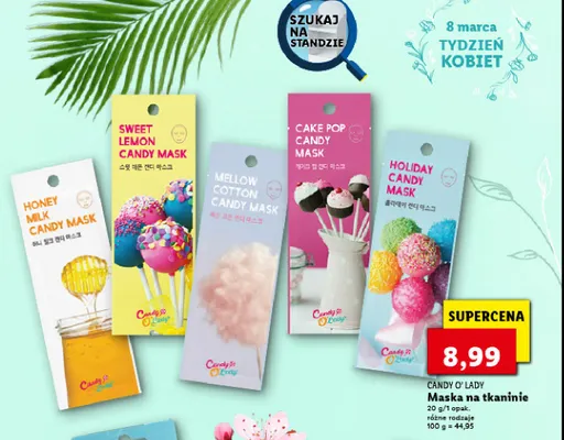 Przegl膮daj podobne oferty promocyjne do Nawilzajaca maska w plachcie o zapachu waty cukrowej Candy o'lady!