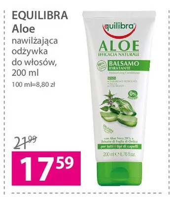 Cena produktu różni się w zależności od wybranego sklepu. Niestety nie posiadamy danych o aktualnych promocjach, jednak wśród archiwalnych ofert Nawilżająca odżywka aloesowa Equilibra aloe kosztuje od 17,59 zł.