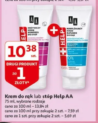 Cena produktu różni się w zależności od wybranego sklepu. Niestety nie posiadamy danych o aktualnych promocjach, jednak wśród archiwalnych ofert Nawilżający krem ratunek do rąk ulga dla suchej spieprzchniętej skóry Aa help kosztuje od 5,69 zł do 6,99 zł.