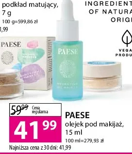 Cena produktu różni się w zależności od wybranego sklepu. Niestety nie posiadamy danych o aktualnych promocjach, jednak wśród archiwalnych ofert Nawilżający olejek pod makijaż Paese kosztuje od 41,99 zł.