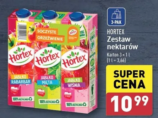 Nektar jabłko-rabarbar + jabłko-mięta + jabłko-wiśnia Hortex promocje w sklepach - znajdź ofertę dla siebie!