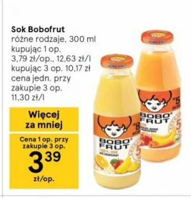 Cena produktu r贸偶ni si臋 w zale偶no艣ci od wybranego sklepu. Niestety nie posiadamy danych o aktualnych promocjach, jednak w艣r贸d archiwalnych ofert Nektar jab艂kowo-ananasowy Bobo frut kosztuje od 3,39 z艂.