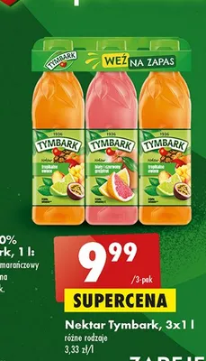 Cena produktu r贸偶ni si臋 w zale偶no艣ci od wybranego sklepu. Niestety nie posiadamy danych o aktualnych promocjach, jednak w艣r贸d archiwalnych ofert Nektar tropikalne owoce x2 + bia艂y i czerwony grejpfrut Tymbark 1936 kosztuje od 9,99 z艂.