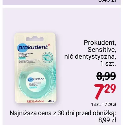 Cena produktu r贸偶ni si臋 w zale偶no艣ci od wybranego sklepu. Niestety nie posiadamy danych o aktualnych promocjach, jednak w艣r贸d archiwalnych ofert Ni膰 dentystyczna sensitiv 40 m Prokudent kosztuje od 6,99 z艂 do 7,29 z艂.