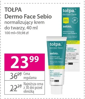 Cena produktu różni się w zależności od wybranego sklepu. Niestety nie posiadamy danych o aktualnych promocjach, jednak wśród archiwalnych ofert Normalizujący krem nawilżający na noc Tołpa: dermo face, sebio kosztuje od 18,99 zł do 29,99 zł.