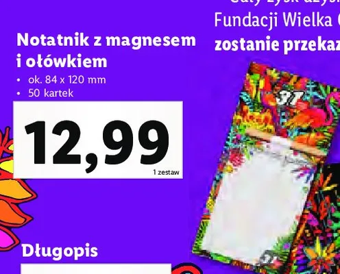Zastanawiasz si臋, gdzie kupi膰 i ile kosztuje produkt Notatnik z magnesem i o艂贸wkiem 50 kart. wo艣p? Regularnie sprawdzamy, czy jest promocja na ten produkt w Biedronka, Lidl, Kaufland, Auchan, Netto, Makro i innych sklepach. Aktualnie nie posiadamy ofert promocyjnych na ten produkt.