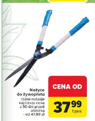Zastanawiasz się, gdzie kupić i ile kosztuje produkt Nożyce do żywopłotu? Regularnie sprawdzamy, czy jest promocja na ten produkt w Biedronka, Lidl, Kaufland, Auchan, Netto, Makro i innych sklepach. Aktualnie posiadamy 6 ofert promocyjnych na ten produkt. Ceny zaczynają się od 39,99zł!